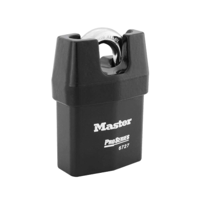 The Master Lock No. 6721 ProSeries® Weather Tough® Shrouded Padlock features a 2-1/8in (54mm) heavy steel body to withstand physical attack and a 3/4in (19mm) tall, 5/16in (8mm) diameter hardened boron alloy shackle for superior cut resistance. Padlock is available with our without cylinder to key at your facility with a choice of 22 Key-in-Knob keyways to match this padlock to your security door locks. The exclusive cover protects from water, ice, dirt and grime.