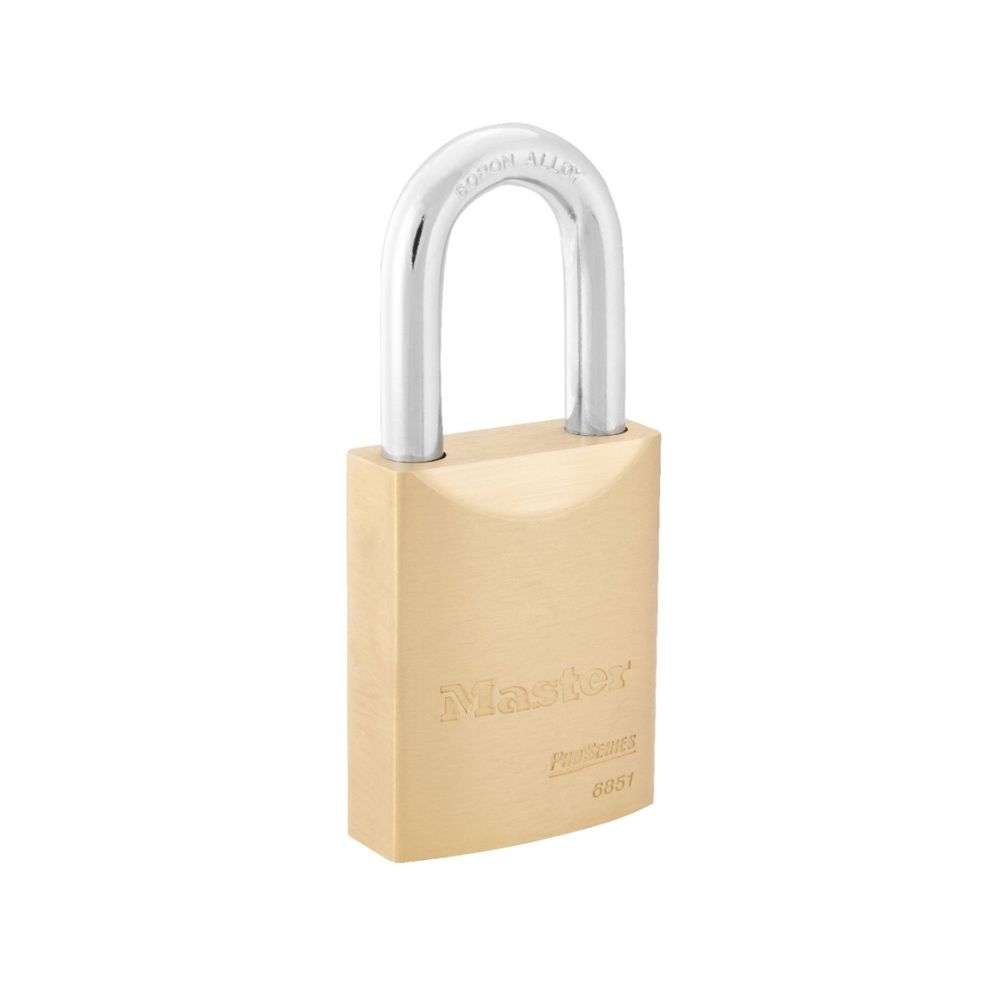 The Master Lock No. 6851 ProSeries® Solid Body Padlock features a 2in (51mm) wide solid brass body to provide extra resistance in caustic, corrosive environments and a 1-1/2in (38mm) tall, 3/8in (9mm) diameter hardened boron alloy shackle for superior cut resistance. Padlock is available with or without core with choice of 16 Small Format Interchangeable Cores to match this padlock to your door locks. Designed for commercial/industrial applications.