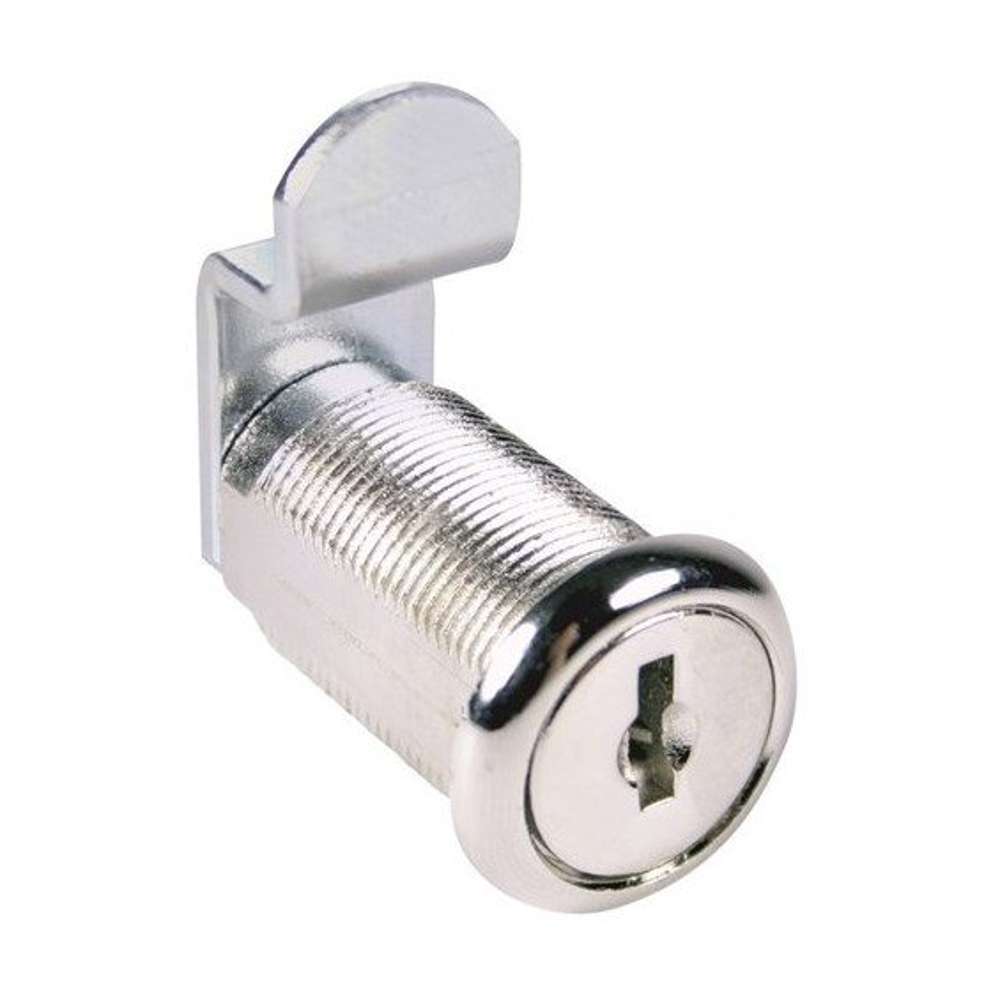 Disc tumbler keyed cam locks have a row of discs inside that must be aligned with the correct key to open. They're harder to pick than pin tumbler keyed cam locks because they require specialized tools to break in. These cam locks install in furniture to protect the contents from theft or unauthorized use.