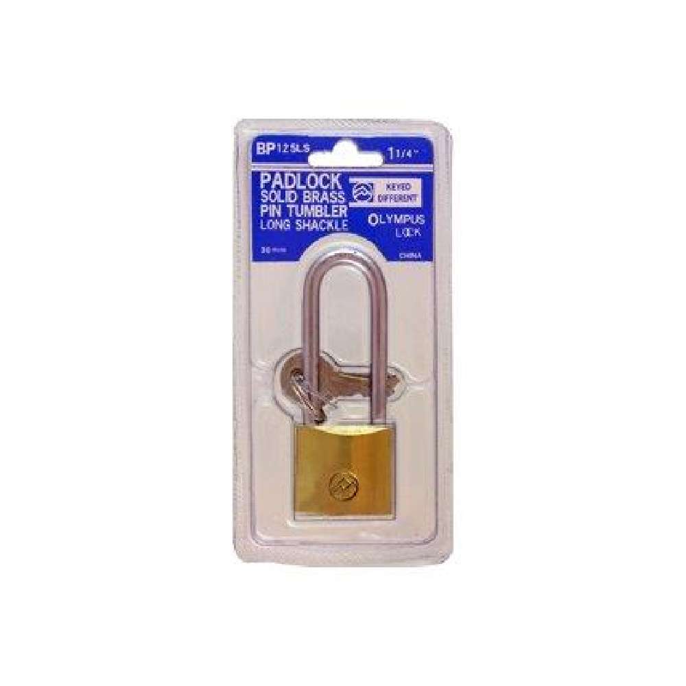 Olympus Lock Padlock, 1-1/4" Wide Brass Body, Long Shackle