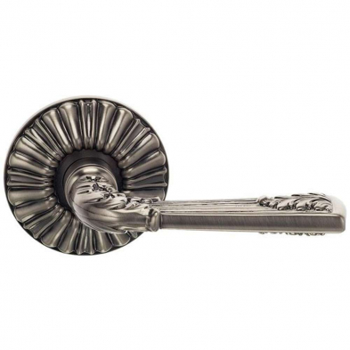 This Ornate Door Lever made by Omnia brings together beautiful detailing and quality craftsmanship. The Ornate Leverset is available in Florentine Brass, Siena Brass, Etruscan bronze, and Venetian Nickel (pictured) finishes. Choose from dummy, passage, and privacy functions for 1-3/8", 1-3/4", or 2" thick doors with either 2-3/8" or 2-3/4" backsets.