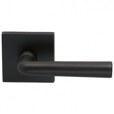 This sleek modern door lever set from Omnia features a square rose combined with a rounded lever for a unique blend of hard and soft that will surely bring a contemporary feel to any space. The square rose has concealed screw mounting (installation screws are hidden) for a very modern look. The Chic Solid Brass Lever with Square Rose is available in a wide array of contemporary finishes. The Solid Brass Chic Door Leverset with Square Rose fits standard 2-1/8 inch bore hole door preparations. It will fit 1-3/8 inch, 1-3/4 inch, or 2 inch door thicknesses with 2-3/8 inch or 2-3/4 inch backsets.