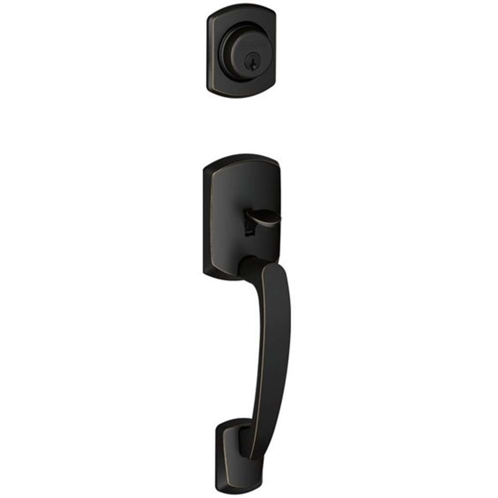 Finish: The Schlage Greenwich Handleset comes in Polished Nickel (618), Satin Nickel (619), Matte Black (622), Polished Chrome (625), Satin Chrome (626), and Aged Bronze (716) finish.