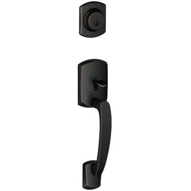 The Schlage Greenwich is a Grade 2 handleset that is part of the Schlage F-Series Collection. Schlage has transitioned their FA-Series handlesets to the F-Series. This item comes with a Grade 1 B-Series Deadbolt.