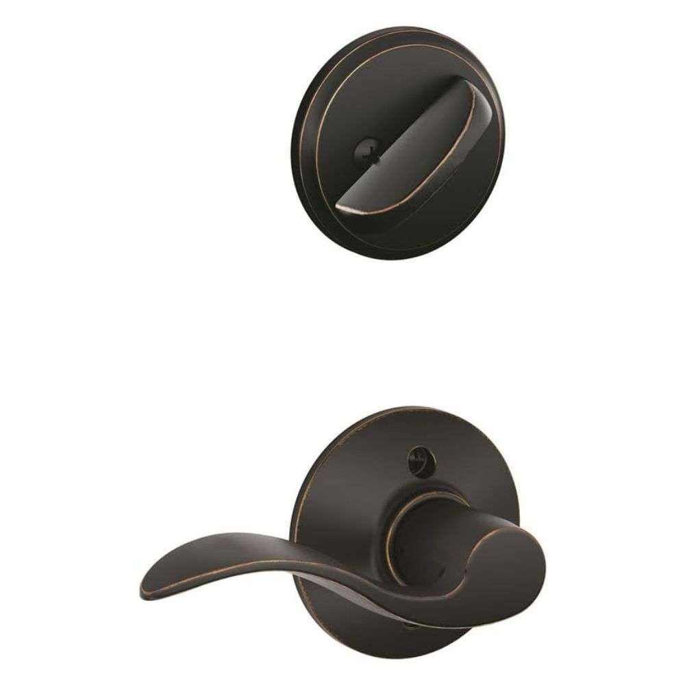 An Interior Pack is the interior trim that syncs with an exterior Handleset to make a complete front door locking unit. Interior Packs consists of a knob or lever trim and matching deadbolt turn. We stock Interior Packs as separate stand-along units so that you can have your choice of any knob or lever in any finish on the inside of your front door. There are two functions of Interior Packs: Single Cylinder (that sync with Single Cylinder Handlesets) and Dummy-Inactive Interior Packs (that sync with Dummy-Inactive Handlesets). While all Schlage Knobs and Levers are available in Interior Pack format, they are specific in terms of matching up to various Handlesets: