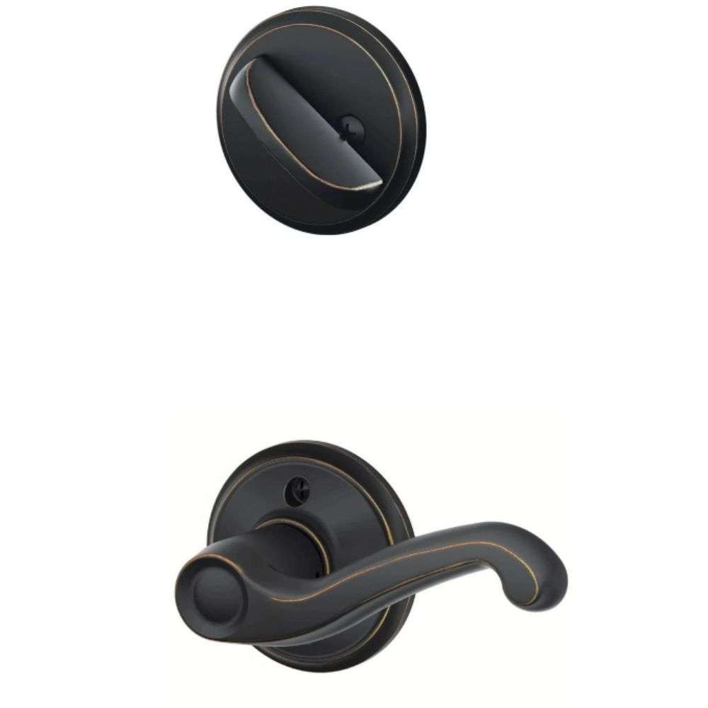 Finish: The Schlage Flair Lever Interior Pack comes in Brass (605), Satin Brass (608), Antique Brass (609), Satin Nickel (619), Antique Nickel (620), Polished Chrome (625), Satin Chrome (626), and Aged Bronze (716) finish.