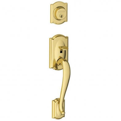 The Schlage Camelot is a Grade 2 handleset that is part of the Schlage F-Series Collection. Schlage has transitioned their FA-Series handlesets to the F-Series. This item comes with a Grade 1 B-Series Deadbolt.