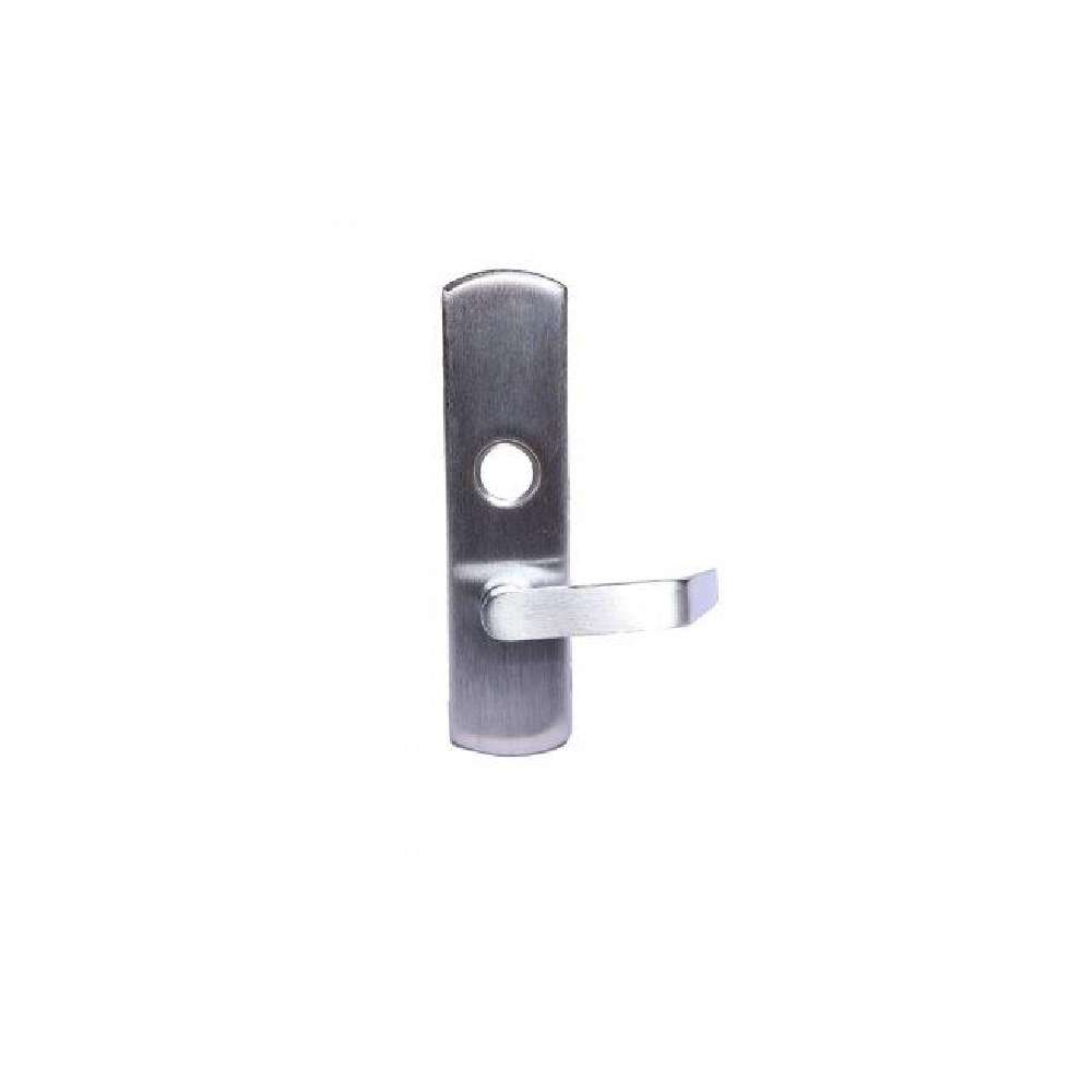 Von Duprin exit device trim for 98/99 series rim and vertical rod devices. The 996EO Exit Only Plate Trim is one of the standard trims for the 98 and 99 series Von Duprin panic bars. It is an exit only plate trim which means there is no handle or opening mechanism. This does not allow entry through the door once you exit.