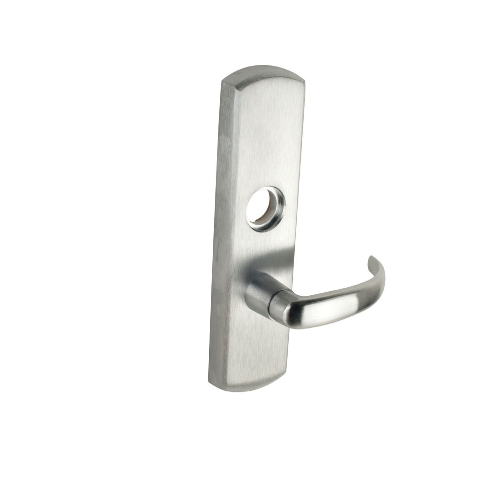Von Duprin exit device trim for 98/99 series rim and vertical rod devices. The 996EO Exit Only Plate Trim is one of the standard trims for the 98 and 99 series Von Duprin panic bars. It is an exit only plate trim which means there is no handle or opening mechanism. This does not allow entry through the door once you exit.