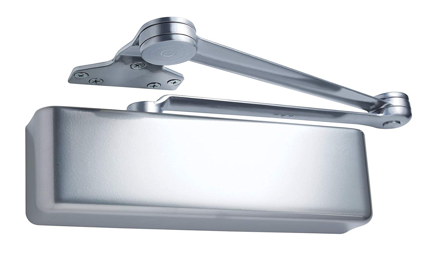 - Standard 4040XP DEL 689 Series closer shipped with regular arm, standard plastic cover, and self-reaming and tapping screws.