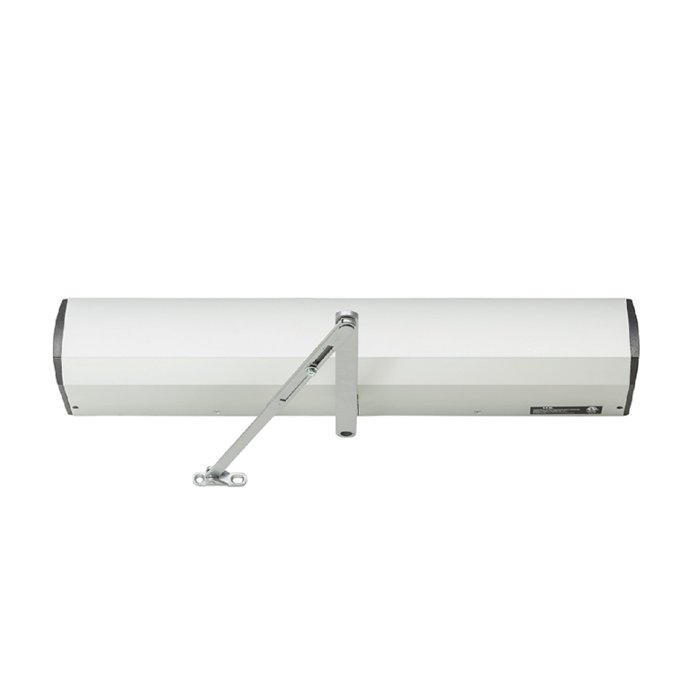 The LCN 9140 BENCHMARK is an automatic electromechanical swinging door operator for use on hinged, center pivoted and offset pivoted doors. When activated, the Benchmark drives the door to full open position, then electrical power is turned off and the door is closed by spring force. The activating circuit opens the door from any position in the closing swing. During a power failure, the Benchmark acts as a manual door closer (Size 3). Door opening and closing cycles, including opening speed, back check speed, hold open time delay, closing speed, and latching position, are adjustable.
