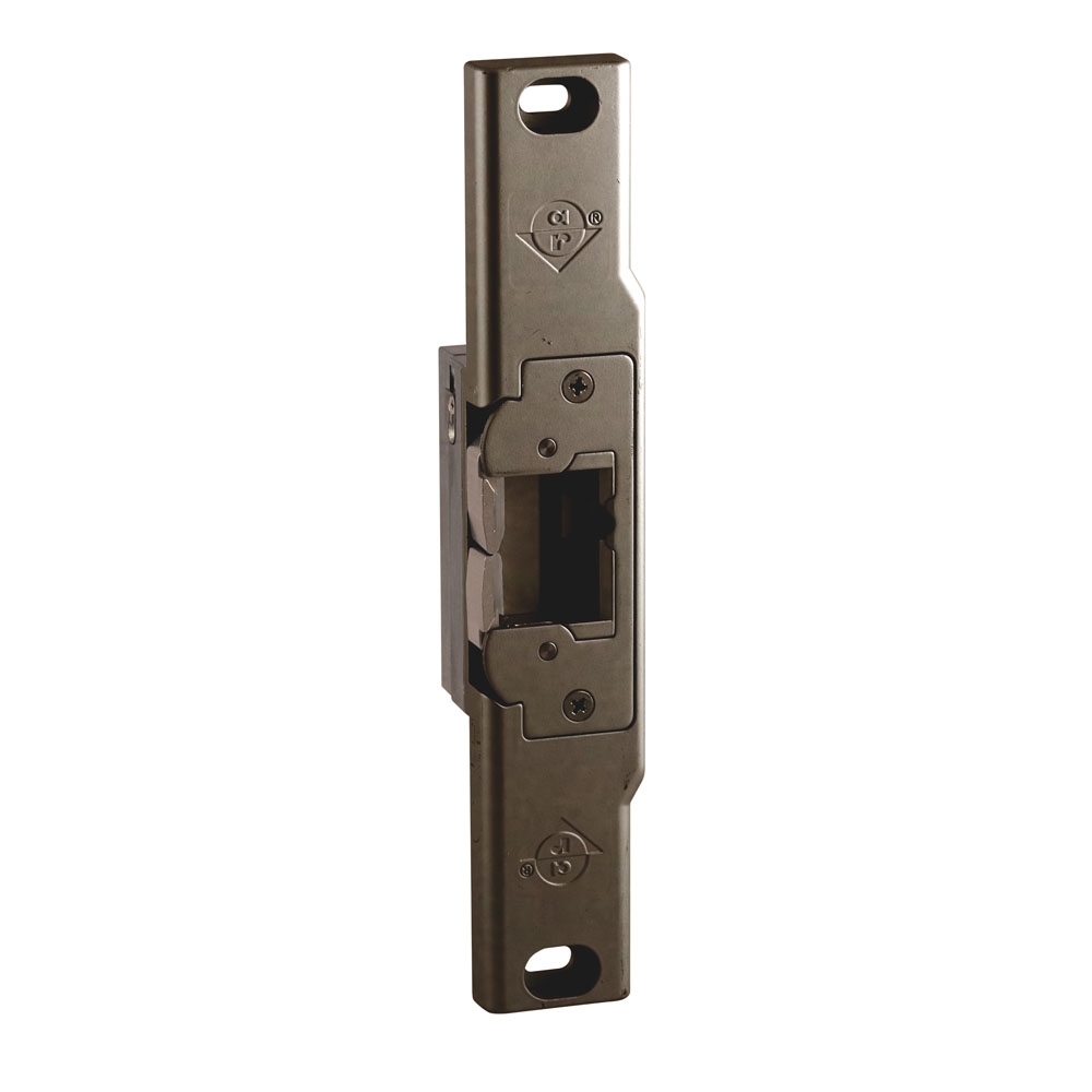 These non-handed strikes feature an ultra-compact design and adjustable stainless steel keepers with over 1,500 lbs [680.4 kg] of holding force in fail secure mode. The strikes release electrically with up to 25 lbs of door preload. Single solenoid operates on 12/16/24 VDC power. Provides electrical remote control, allowing door to open without actuation of the exit device.