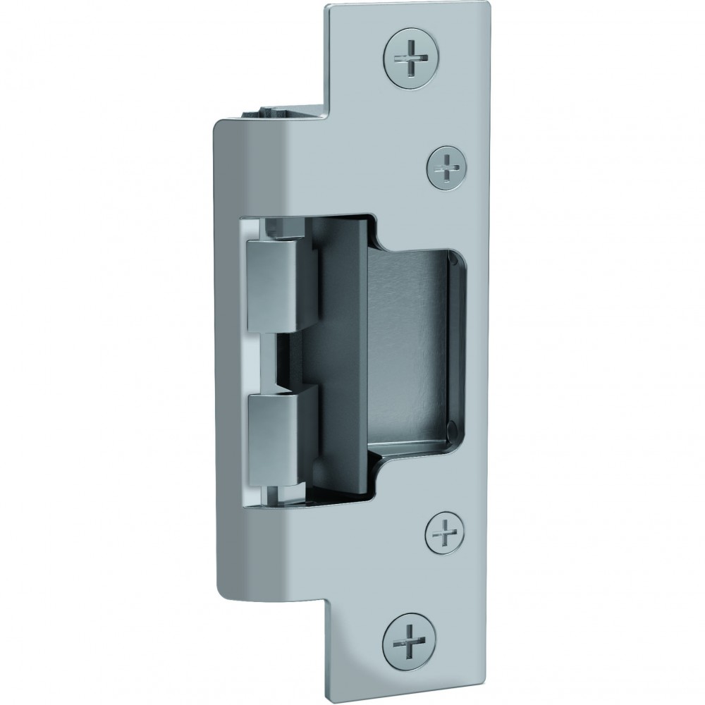 The 8000 series is a compact, high performance electric strike featuring a unique concealed design for use with cylindrical locksets. No cutting on the frame is required. Simply remove the existing strike plate, adjust the vertical alignment feature to the latchbolt centerline, and install. Its strength is derived from a unique keeper pin locking design, enabling the 8000 to exceed the ratings of the frame, door and locking hardware. This field selectable fail secure/fail safe unit is easy to install and accommodates latchbolts up to 5/8" throw. 801 Option For use with: Cylindrical locksets in ANSI metal jambs, with latchbolts up to 5/8" throw