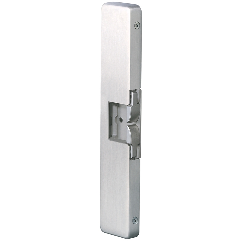 The 9400 Series Genesis™ is a slim-line, surface mounted electric strike designed to accommodate rim exit devices with a 1/2" throw latchbolt. All components are completely encased within its 1/2" thick stainless steel housing, so no cutting on the frame is required for installation. Simply place the electric strike on the surface of the frame, align it with the exit latchbolt, and install.