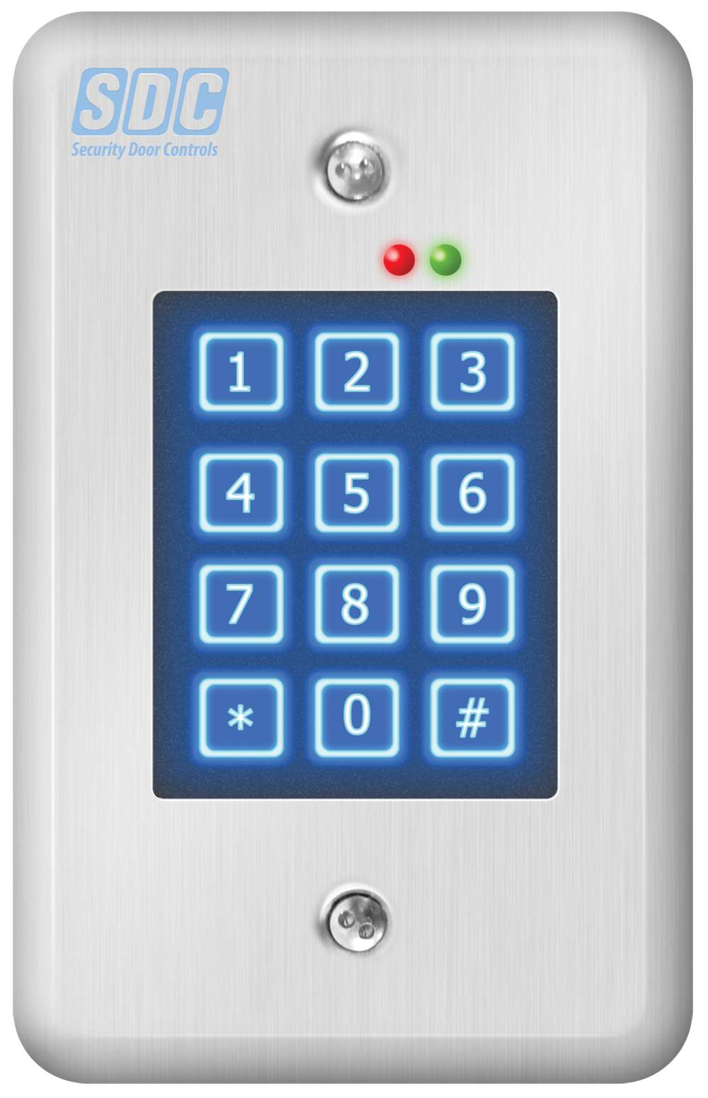 SDC’s 918 series of indoor standalone digital keypads are designed to control access of a single-entry point for facilities with up to 500 users. Each user is assigned a personal identification number (PIN). Keypad entry of a valid one-to-six-digit code activates one or both of the output relays which releases an electric door lock. 918W models are designed to interface with SDC’s IPPro® or most access control systems, providing a standard 26-bit Wiegand output.