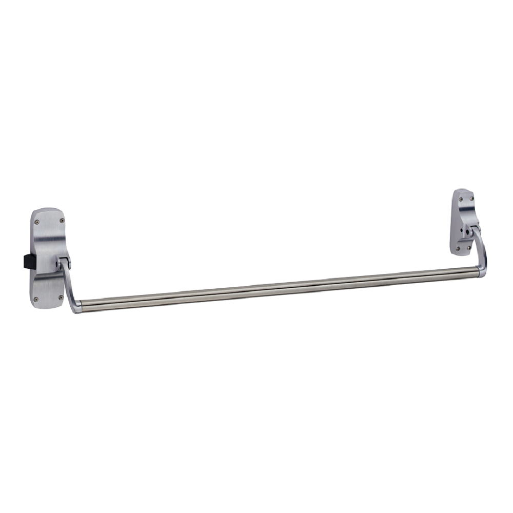 The Von Duprin 8827-F Fire surface mounted vertical rod exit device for all types of 8' x 8' (2438mm x 2438mm), UL listed, 3 hours. Fits door stiles as narrow as 3-3/4" (95mm). This device is field reversible.