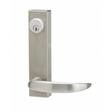 The 3080E Electrified Entry Trim is a continuous duty solenoid operated device that will allow the lever handle to be turned to unlatch the exit device when power is applied. When there is no power input, the handle is locked in place and the exit device remains latched. This electrified entry trim works with a card reader, keypad or a push button and is designed for entry door, stairwell and fire door applications.
