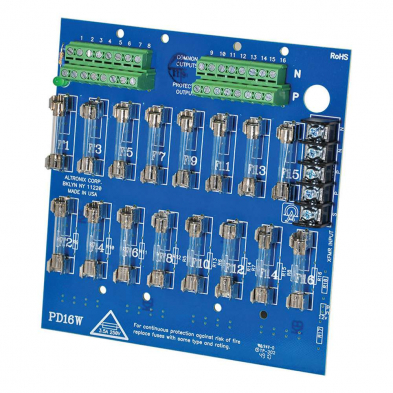 Altronix PD16W Series UL Listed Sub-Assembly power distribution module is designed to convert a single AC or DC input into sixteen (16) individually fuse protected outputs.