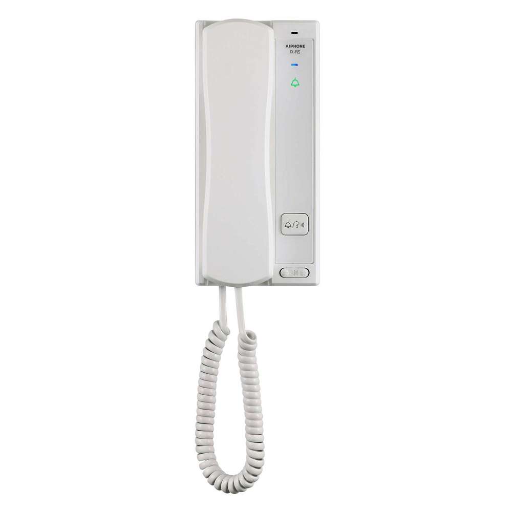 The IX-RS-W SIP Complaint Audio Sub Station is an IP addressable hands-free or privacy handset (White). Features video entry security, internal communication, and emergency stations.