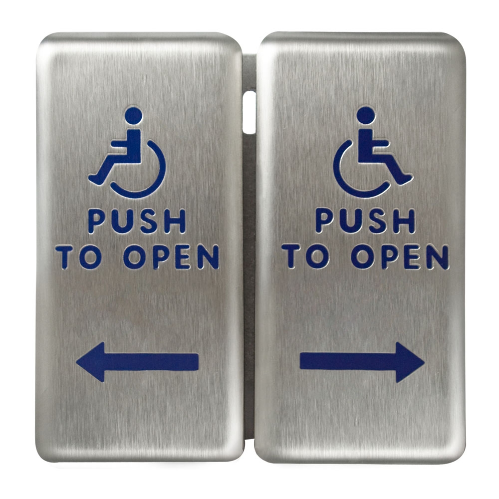 The BEA 10PBDGP1 Stainless Steel Push Plate is a vestibule push plate with “push to open” text and a handicap logo. The BEA 10PBDGP1 Stainless Steel Push Plate improves overall access, enhance accessibility for those with disabilities and seamlessly integrates with an automatic door’s activation.This ADA-compliant push plate combines two jamb style plates that fit into one double gang mounting box for ease of installation. The push plates may be hard wired to the door operator or connected to BEA’s line of wireless transmitters.