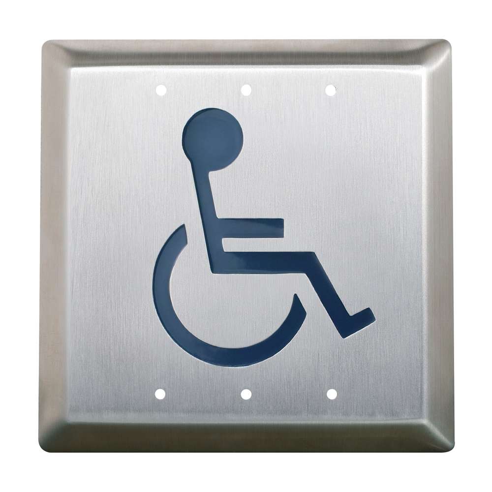 CM-45/2 Application: 4-1/2 Square Push Plate Switch / Concealed Screws / WHEELCHAIR symbol / Blue.