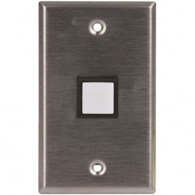 The 980 economy push button is a momentary (SPST), maintained (SPST), or time-delay (DPDT) switch. This push button is an economical solution for request to exit switches with easy mounting and installation. The non-illuminated button for the RCI 980 has a white face with black trim that is set in a stainless-steel faceplate.