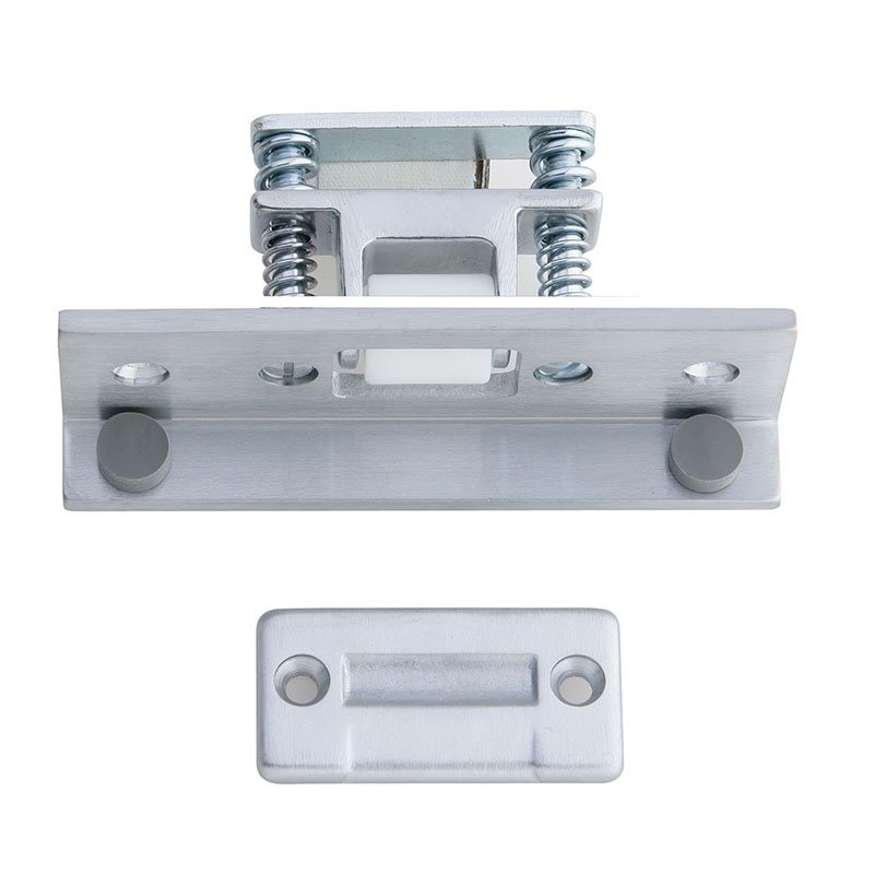 Ives has multiple roller latches and catches that assure a door will stay closed when not in use. These accessories will not keep a door secure and are not meant for security applications; they only help keep a door closed. Ives also offers a variety of surface bolts and door guards to provide an additional security level.