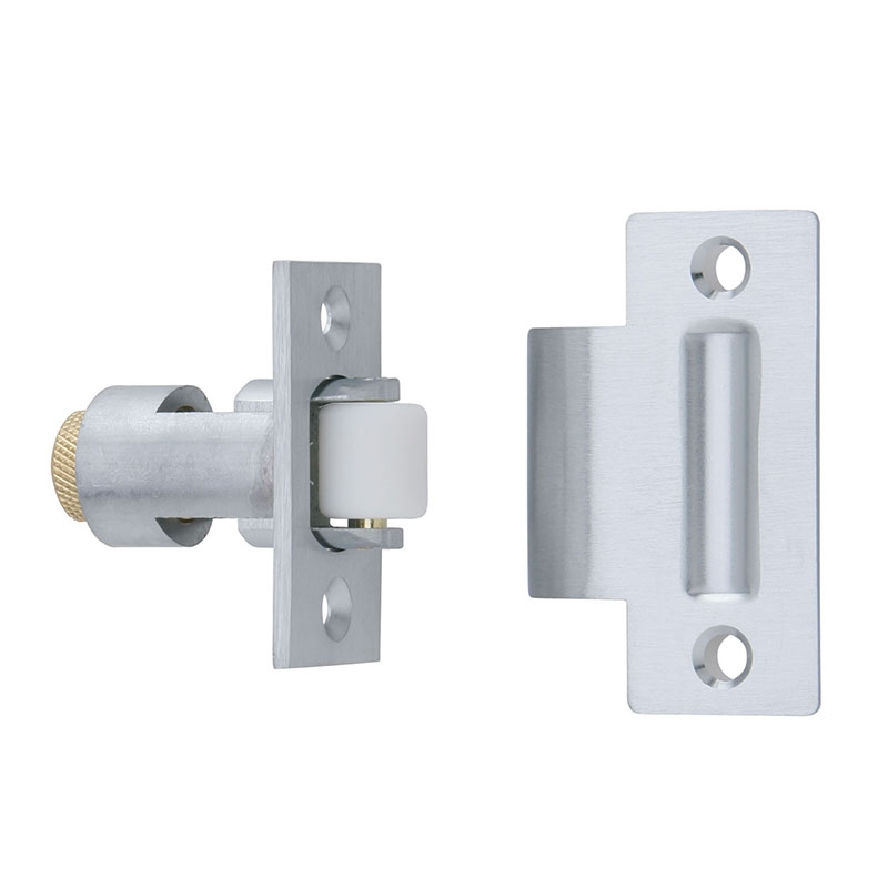 - The projection of the roller is easily adjusted by turning knurled knob on back of latch.