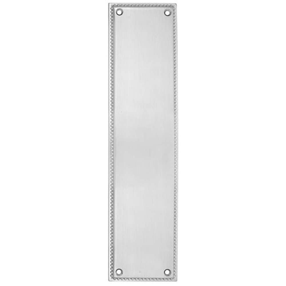 Finish: The 86081 Knoxville Push Plate comes in French Antique (US7), Oil Rubbed Bronze (US10B), Satin Nickel (US15), Pewter (US15A), Polished Chrome (US26), Lifetime Brass (US3-Lifetime), and Unlacquered Brass (US3NL) finish.