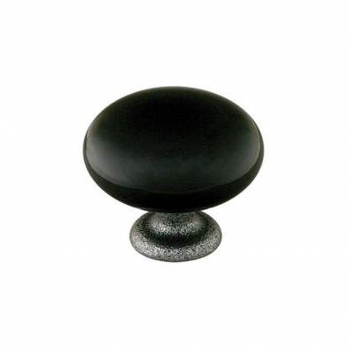 The Emtek Madison Cabinet knob features an black mushroom shaped knob and a wrought steel stem. The wrought steel construction offers durability and a weighted sturdy feel.