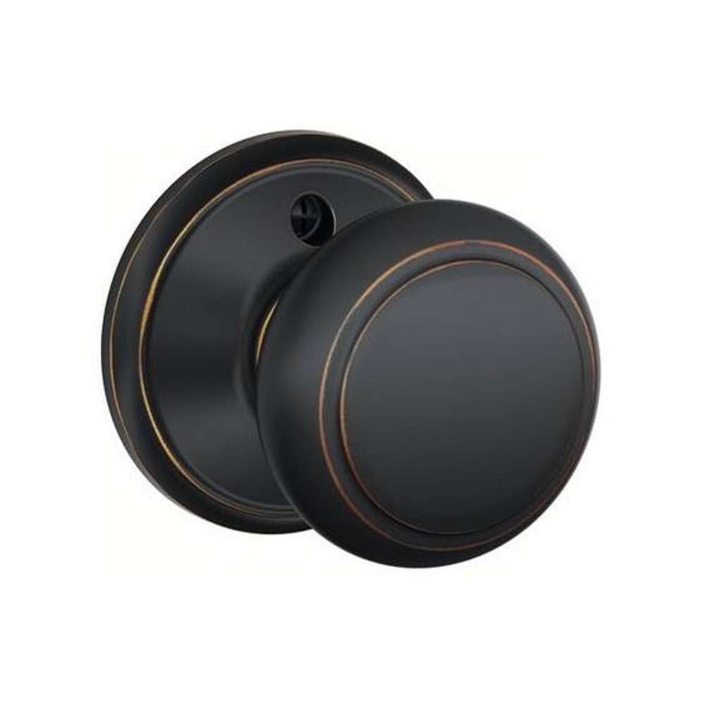 Function: The Schlage Andover Knob is available in Passage (F10 AND), Privacy (F40 AND), Keyed Entry (F51A AND), and Single Dummy (F170 AND) function.