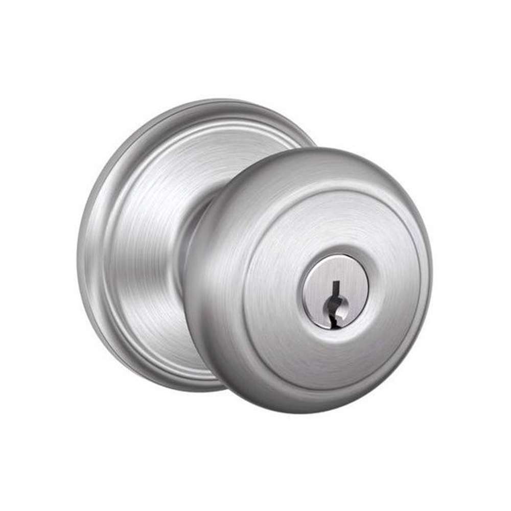Function: The Schlage Andover Knob is available in Passage (F10 AND), Privacy (F40 AND), Keyed Entry (F51A AND), and Single Dummy (F170 AND) function.