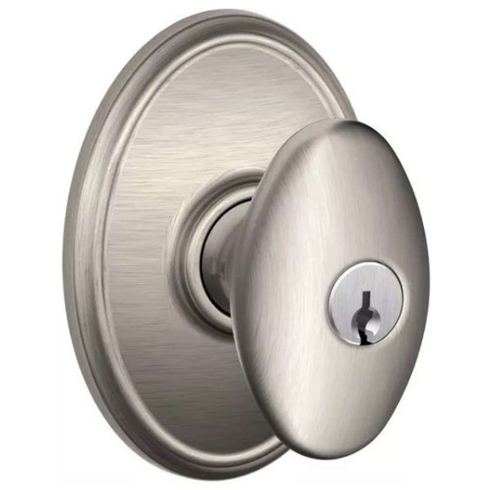 The Schlage Siena is a Grade 2 knob that is part of the Schlage F-Series Collection. The eye-catching oval shape gives it a unique and memorable look.
