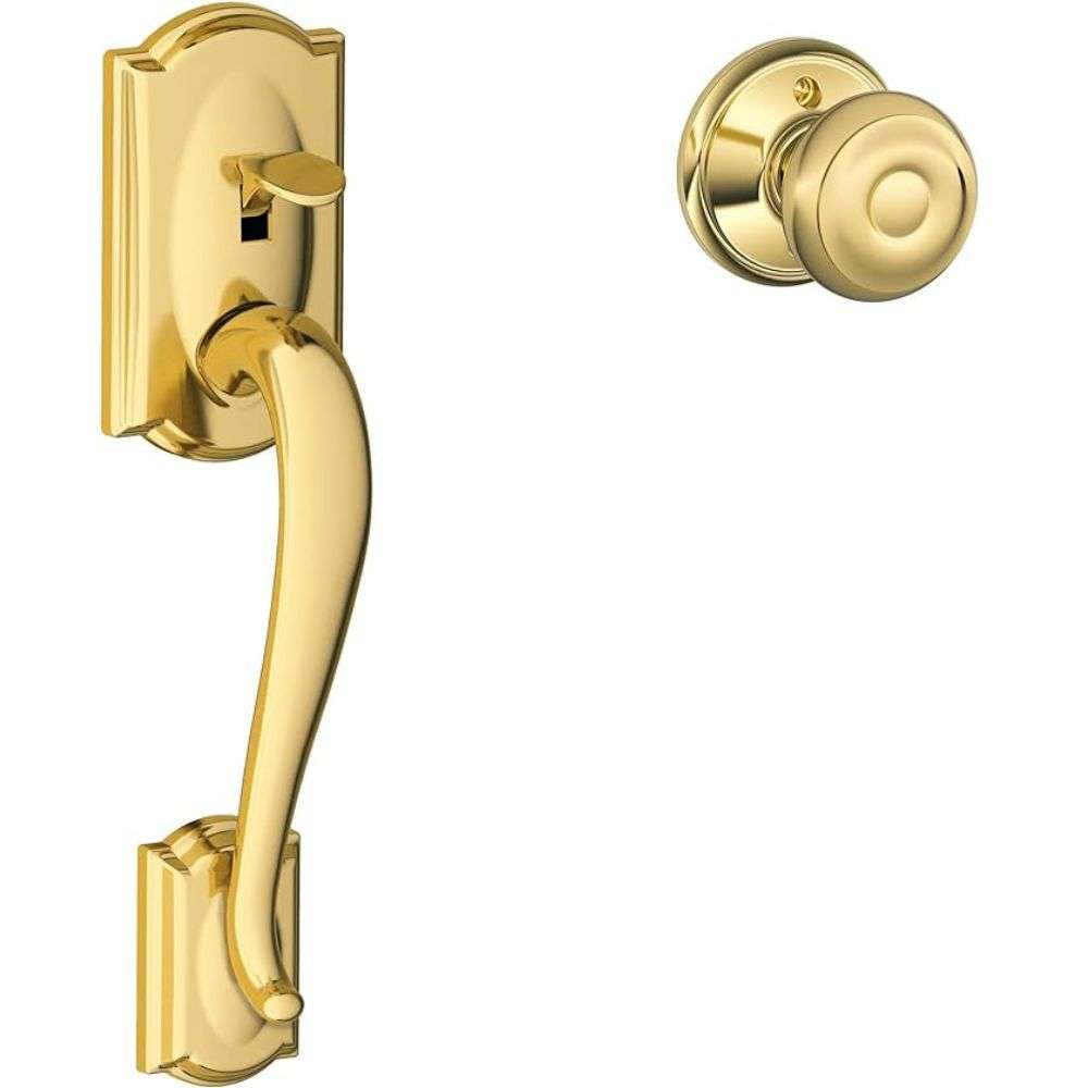 The Schlage FE285 Keypad Camelot is a Grade 2 keypad front entry 1/2 handleset (Lower Portion Only). Combine with the BE365 Keypad Deadbolt to from the FE365 Full Keypad Handleset.