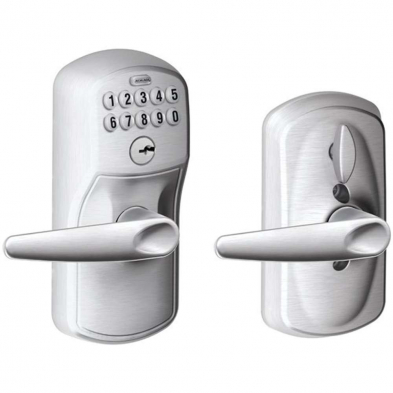 The FE595 Keypad Door Lock gives you the freedom of having the door auto-lock, or remain in the unlocked position until you decide to have it begin auto-locking again. The Flex series is an unbeatable value for residential applications, small office entry doors, or inner office doors. With a number of finishes and lever styles to choose from, you are guaranteed to find a great lock! Combining yesterday's craftsmanship with today's fit and function, the Schlage line of keypad entry locks with flex may just be the last locks you will ever need. Just think, you never again have to fumble, lose, or worry about being locked out. Keyless convenience has enhanced the lifestyles of people everywhere, why not start enjoying it for yourself today!