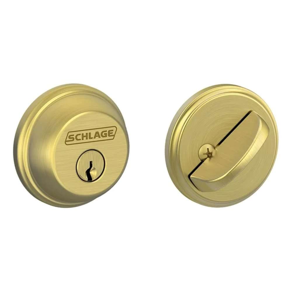 Finish: The Schlage B60 Series Deadbolt comes in Lifetime Brass x Brass (505 x 605), Satin Brass (608), Antique Brass (609), Oil Rubbed Bronze (613), Polished Nickel (618), Satin Nickel (619), Antique Nickel (620), Distressed Nickel (621), Matte Black (622), Polished Chrome (625), Satin Chrome (626), and Aged Bronze (716) finish.