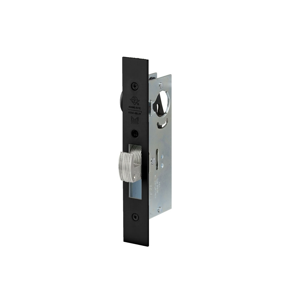 The MS1850S-X5X Series MS® Deadlock answers the security need of sliding narrow stile aluminum doors in commercial, industrial, and institutional buildings. The locking mechanism is identical to the MS1850S Series MS Deadlock, except that the massive laminated bolt is provided in a hook shape to resist the parting motion of sliding door and jamb. The over-center maximum security (MS) locking action assures that forced entry attempts to pry the door in any direction, up, down, or sideways will be defeated.