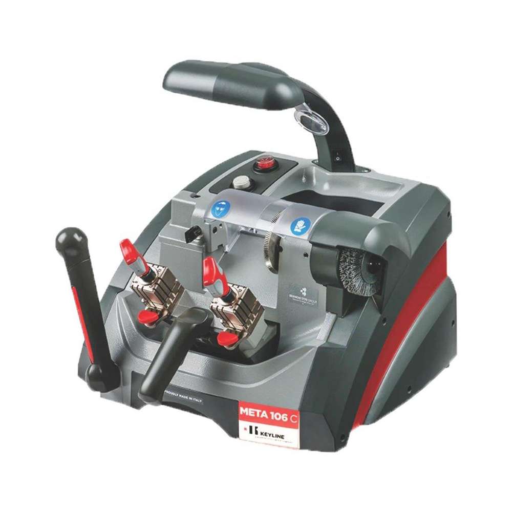 The 106 semi-automatic is a heavy-duty, quality duplicator and features several upgrades such as built-in chip tray, magnifying glass, jaw locking mechanism and independent brush button and light switch.