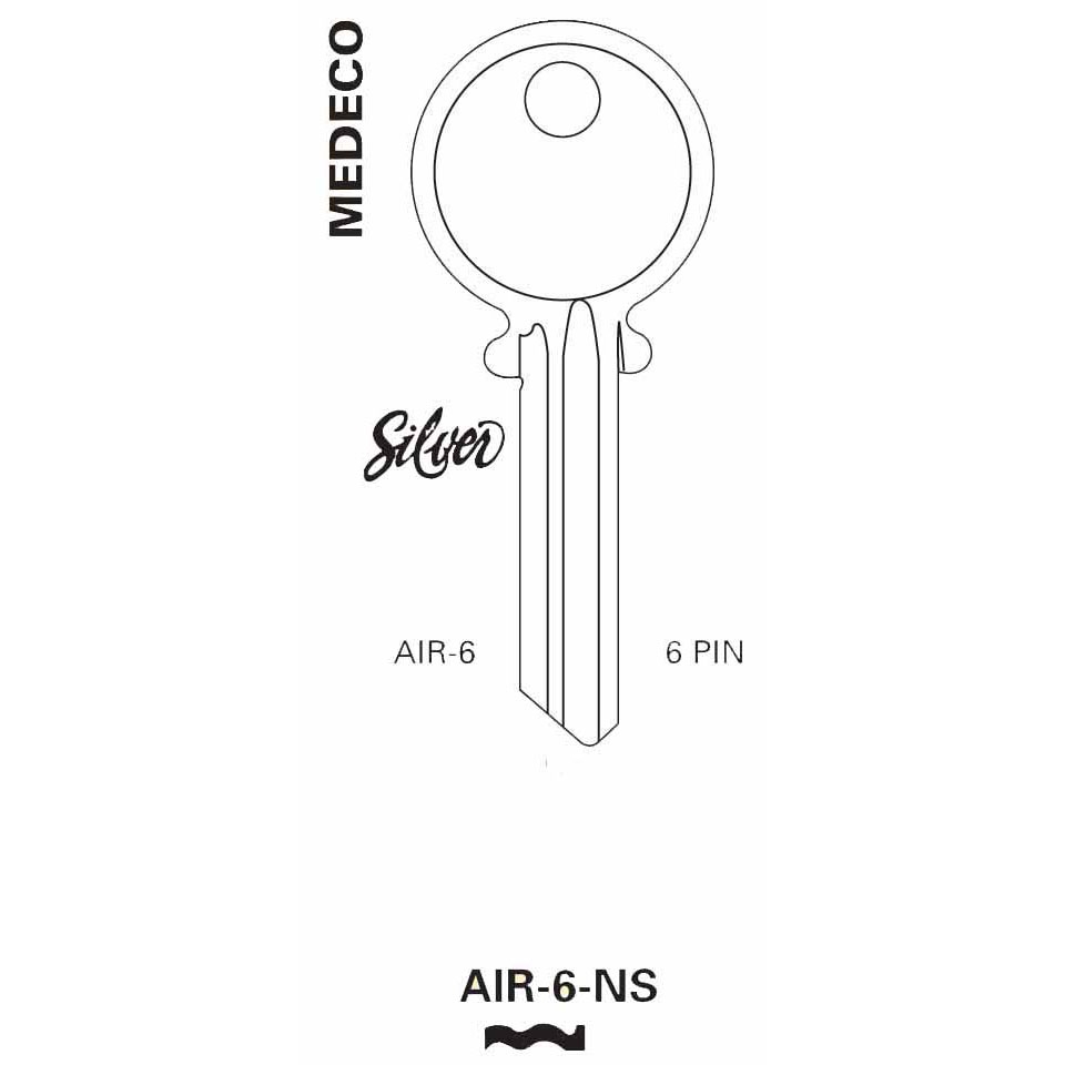JET Hardware AIR-6-NS 6 Pin Key Blank, in nickel silver, for Medeco cylinders.