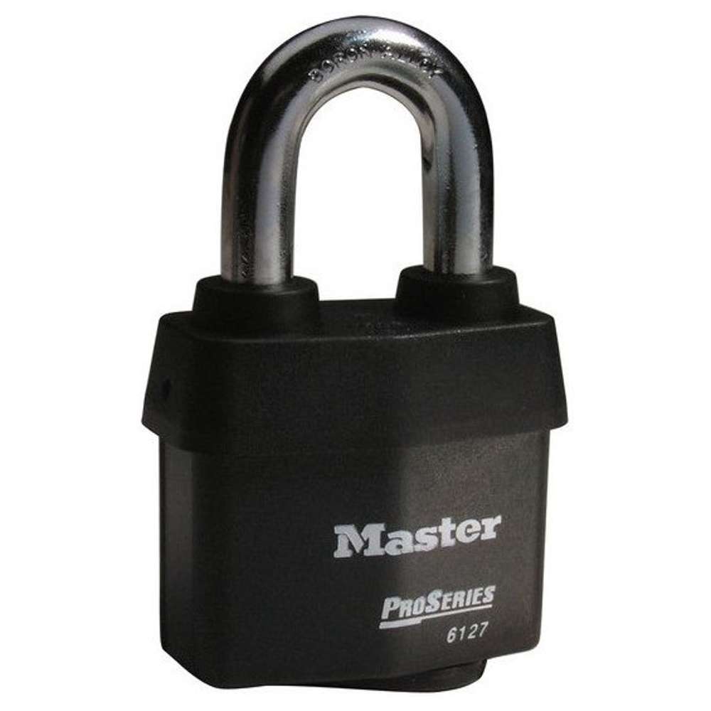 Master Lock's Pro Series Weather Tough padlocks was designed for use in harsh outdoor conditions. Features a plastic cover that protects the heavy steel body from adverse weather conditions, including dirt, mud, grime, rain, and ice. The rekeyable cylinder can be swapped out in a matter of seconds, allowing this padlock to be used at multiple job sites or key systems.