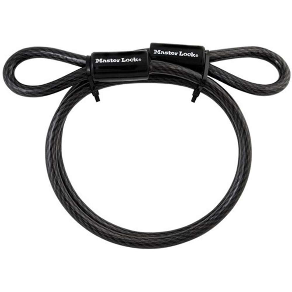 The Master Lock No. 85DPF Looped End Cable is 4ft (1.2m) long and features 3/8in (10mm) diameter braided steel for maximum strength and flexibility. The protective vinyl coating protects against scratches. The cable is self-coiling for easy storage. This cable is recommended to be used with laminated locks, solid steel locks, and mini-U-locks; to secure large or bulky items. The Limited Lifetime Warranty provides peace of mind from a brand you can trust.
