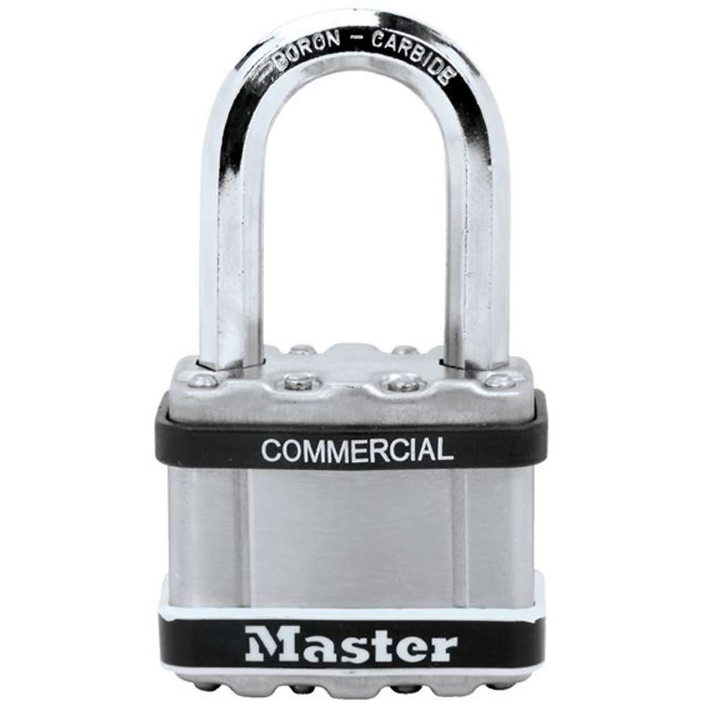 Master Lock Commercial Magnum is a laminated padlock encased in stainless steel for improved weather resistance. The weatherability of stainless steel combined with the strength of our commercial-grade laminated padlock means enhanced security for you. Its octagonal, chrome-plated boron-carbide shackle and dual-ball bearing locking mechanism provide superior strength and protection.