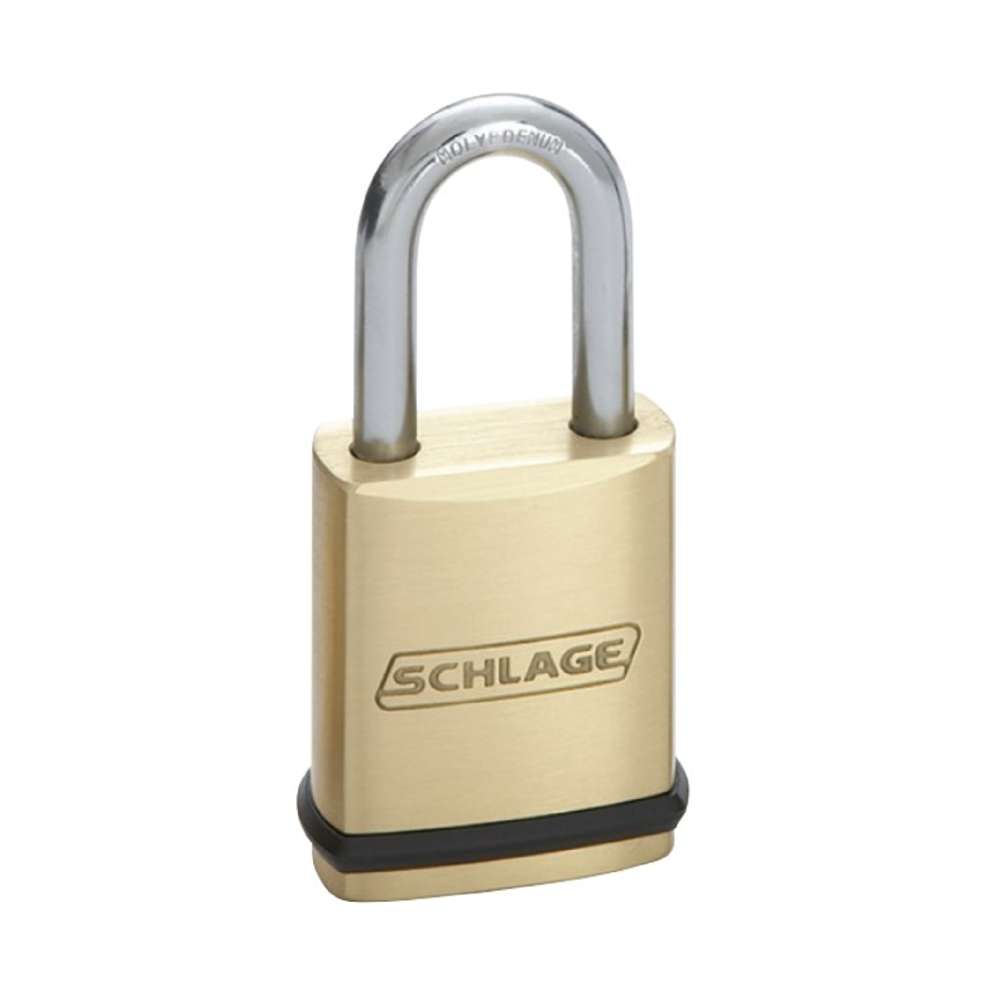 The Schlage Brass padlocks meet or exceed ASTM standards for standard steel shackle, shackle cutting and corrosion resistance. The solid brass body resists corrosion for all-weather performance and the molybdenum hardened steel shackle offers greater cut resistance. Double deadbolt locking mechanism provides extra security. Patented interchangeable shackle design allows for easy disassembly.