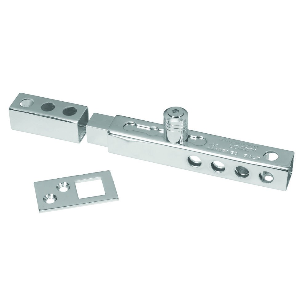 The American Lock No. A895 Steel Throw Locking Bolt features a 3/4in (19mm) hardened steel locking bolt for maximum strength and is full adjustable from 3/4in (19mm) to 2-3/8in (60mm). Bolt is chrome plated for corrosion resistance and the mounting hardware is included for easy installation.