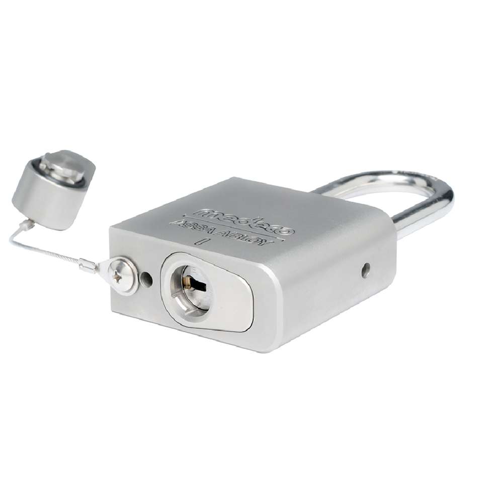 The Medeco All Weather Padlock (AWP Series) offers the highest level of padlock weather and severe service protection available from Medeco. The body is solid 303 stainless steel and is available with either stainless steel or boron shackles. A weatherproof cylinder seal cap, attached by a stainless-steel cable, seals both mechanical and eCylinders from harsh environments. Multiple mechanical and intelligent key technologies are available.